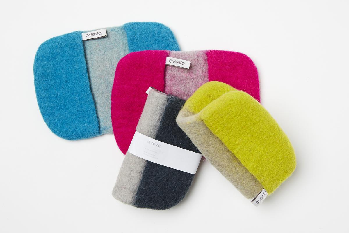 Passend dazu gibt’s im Mariechen jetzt wieder die bunten Wollfilzprodukte der nachhaltigen schwedischen Firma Aveva, die richtig schick aussehen und noch dazu wirklich praktisch sind.