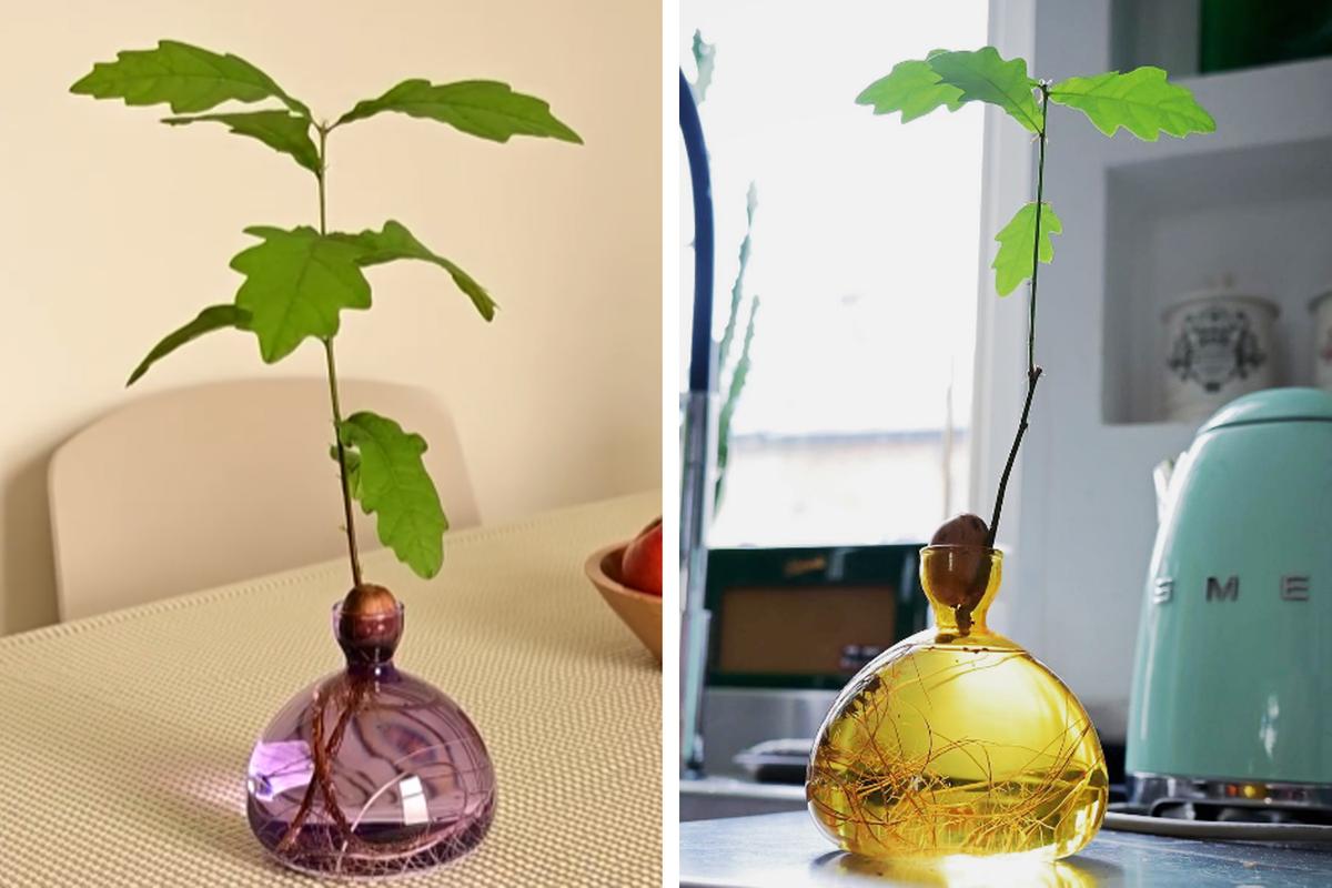 Mithilfe der speziell geformten Keimgläser aus Borosilikat-Glas kann jede*r aus einer - zuvor speziell vorbereiteten Eichel - bei sich zuhause eine neue Eiche wachsen lassen. Sobald die Eicheln einen kleinen Keim entwickelt haben, werden sie in die kleine Öffnung der Vase gesetzt und mit Wasser versorgt - dann kann die kleine Eiche nach und nach wachsen bis sie nach etwa einem Jahr bereit für ein Aussetzen in die freie Natur ist.