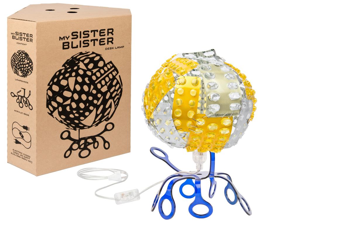 MY SISTER BLISTER Lampe: Die oben erwähnte Beleuchtung aus recycelten, bunten Tablettenblistern gibt es bei uns auch in der Miniaturvariante zu kaufen. Als Nachttischlampe, Wandlampe oder Deckenlampe einsetzbar!