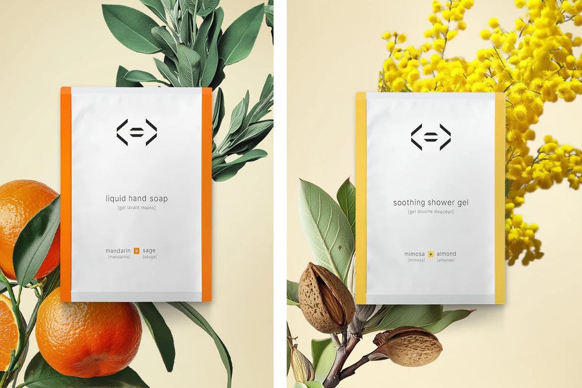Die Sachets für Duschgel gibt es in den Duftnoten Basilikum+Zitrone, Osmanthus+Jasmin, Mandarine+Salbei und Mimose+Mandel.